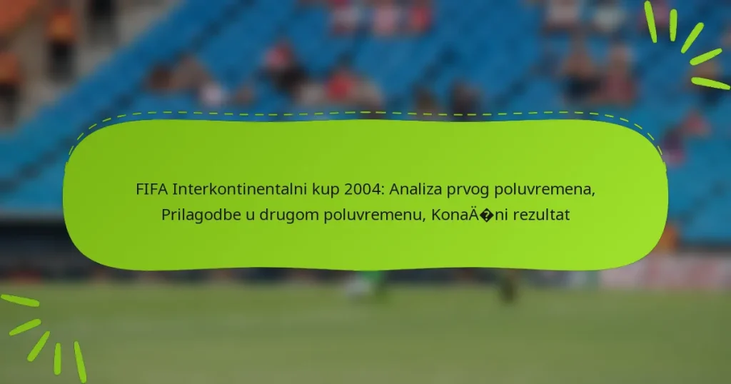FIFA Interkontinentalni kup 2004. godine obilježio je uzbudljiv dvoboj između dva moćna tima, pri čemu je prvo poluvrijeme otkrilo njihovu taktičku vještinu i ključne trenutke koji su oblikovali utakmicu. Kako je utakmica napredovala u drugo poluvrijeme, napravljene su strateške prilagodbe, što je na kraju dovelo do odlučujuće pobjede Porta rezultatom 1-0, označavajući njihov značajan uspjeh u međunarodnom klupskom nogometu. Key sections in the article: Toggle Koji su bili ključni događaji u prvom poluvremenu FIFA Interkontinentalnog kupa 2004.? Pregled izvedbe tima…