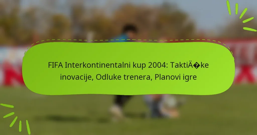 FIFA Interkontinentalni kup 2004. istaknuo je niz taktičkih inovacija koje su transformirale pristup utakmicama, s timovima koji su koristili raznolike formacije i strategije pritiska. Odluke trenera igrale su ključnu ulogu u oblikovanju dinamike momčadi i ukupne izvedbe, jer su strateški odabiri igrača i zamjene izravno utjecali na ishode. Plan igre svake momčadi bio je pomno osmišljen kako bi iskoristio njihove snage dok su se bavili slabostima svojih protivnika, pokazujući važnost detaljne analize i prilagodljivosti u natjecanjima visokih uloga. Key sections…