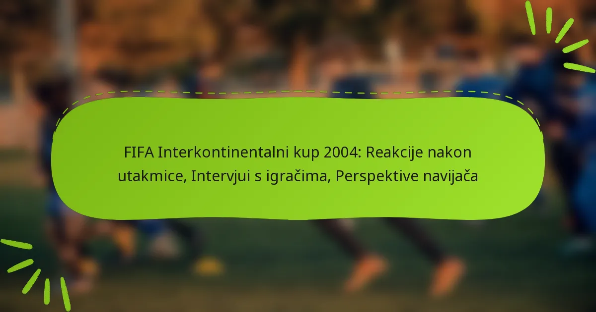 FIFA Interkontinentalni kup 2004. izazvao je vrtlog reakcija igrača, trenera i navijača, ističući značaj utakmice u svijetu nogometa. Intervjui nakon utakmice pružili su vrijedne uvide u individualne izvedbe i strategije timova, dok su strastveni navijači stvorili elektrizirajuću atmosferu koja je naglasila njihovu nepokolebljivu podršku. Ovaj događaj nije samo prikazao taktičke elemente igre, već je i produbio emocionalne veze između timova i njihovih navijača.